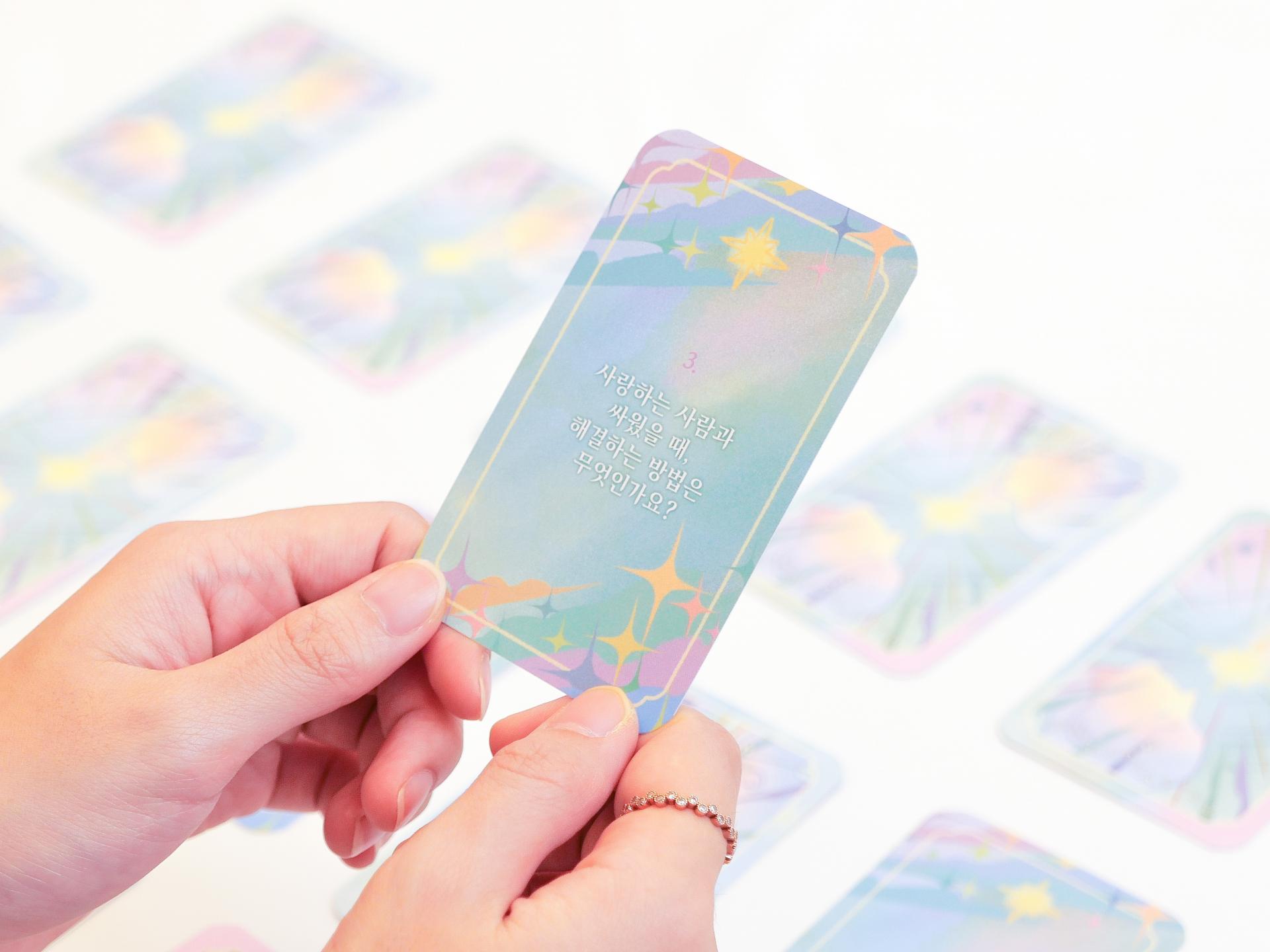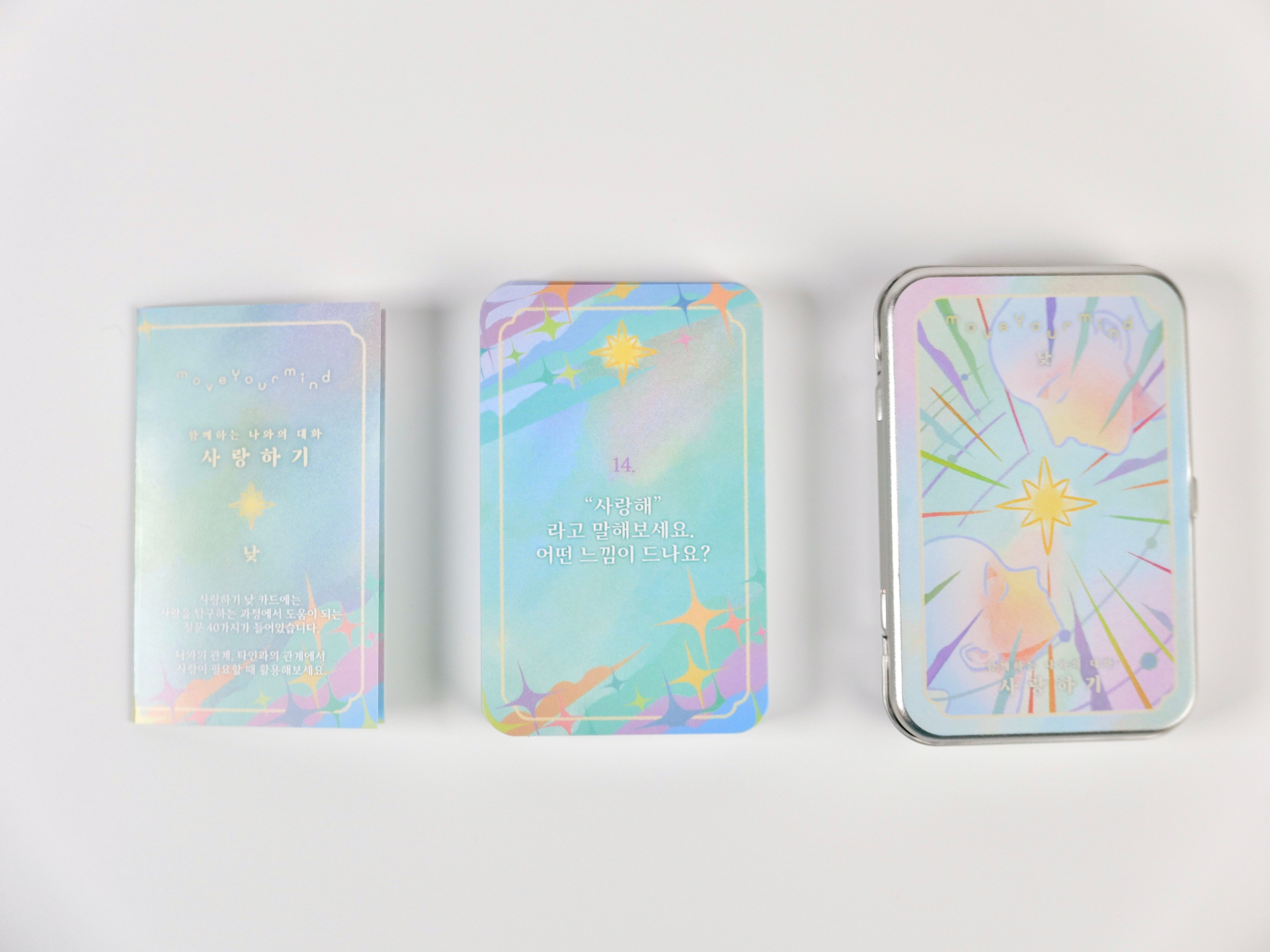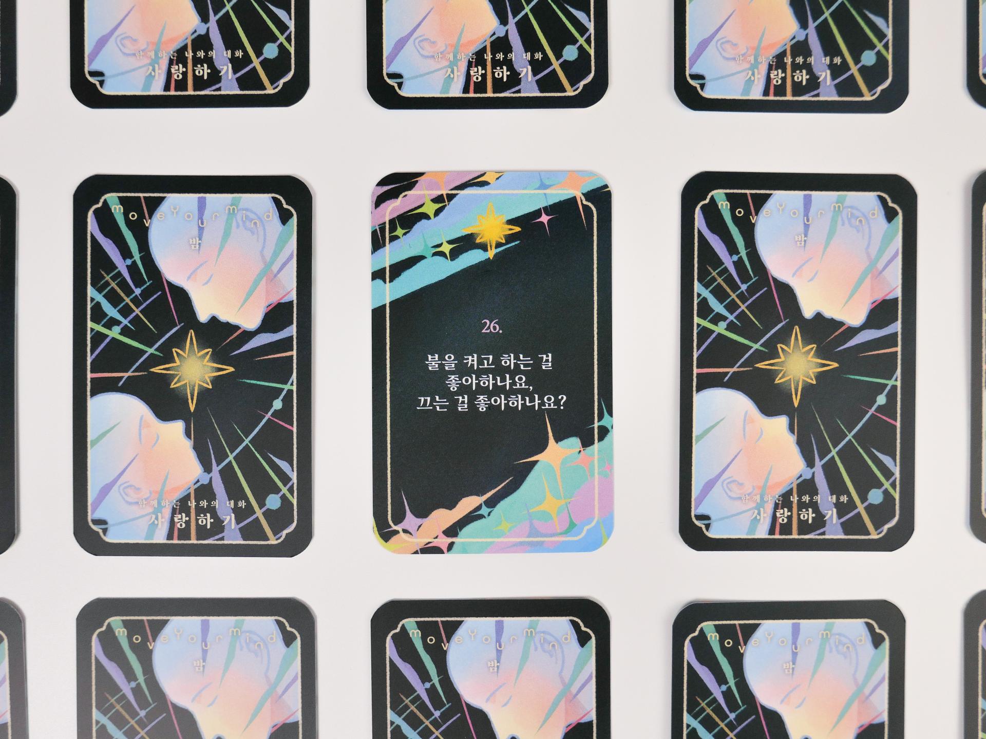 타로카드를 연상시키는 무브유어마인드의 대화카드가 있다면 조금 더 자연스럽게 서로에게 의미있는 질문을 던져 볼 수 있습니다.