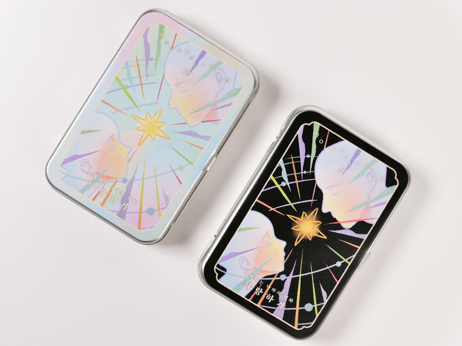 틴케이스와 카드에 인쇄된 일러스트는 사랑을 통해 두 세계가 만나는 모습을 표현하였습니다.