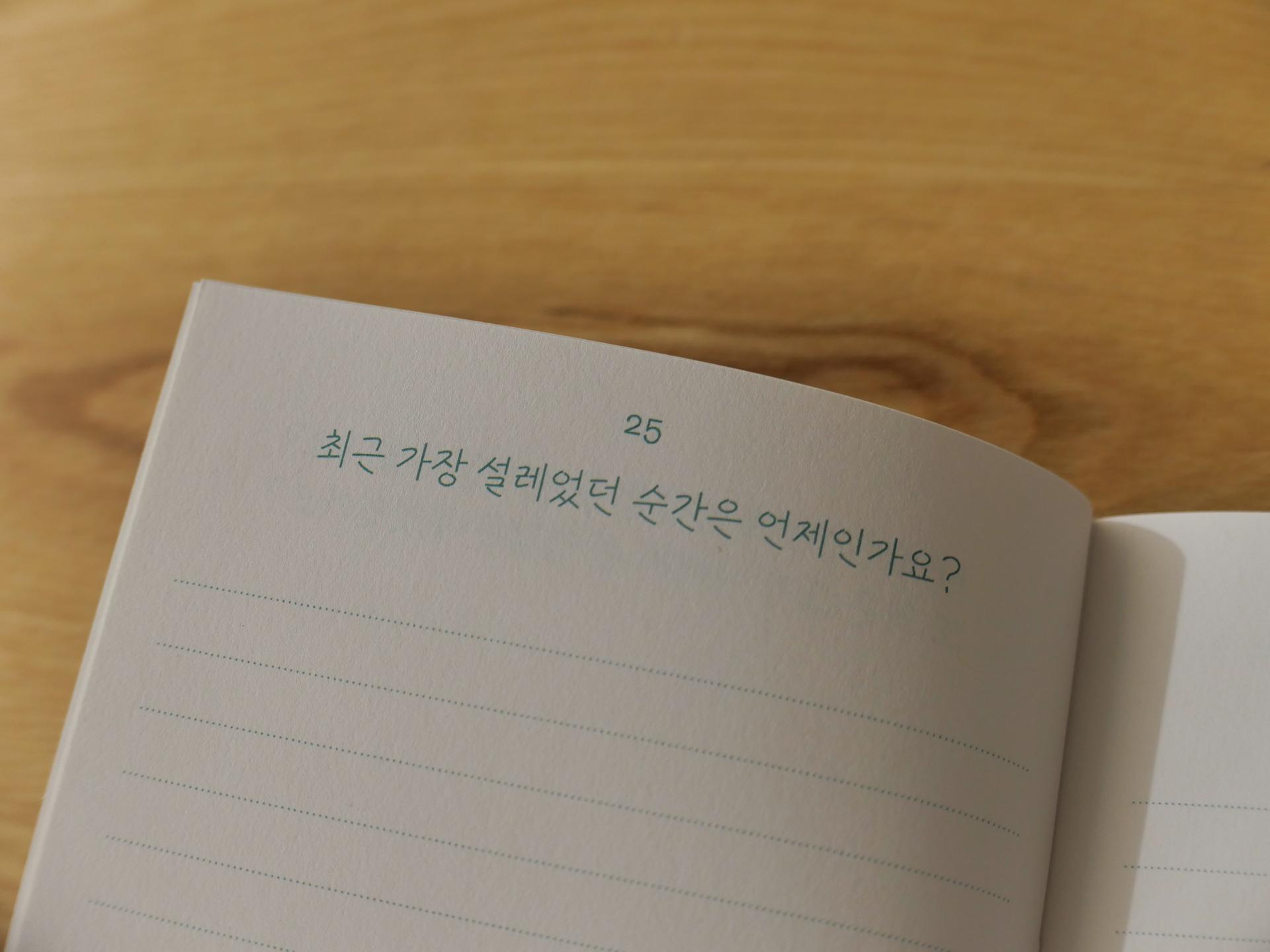 다이어리에는 테마에 맞는 40가지 질문이 준비되어 있어요.